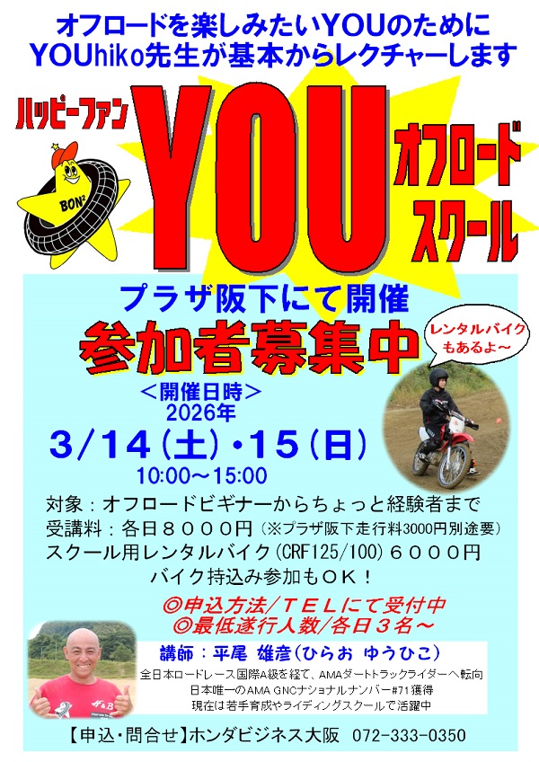 オフロードビギナーさん、ちょっと経験者さん向けのスクール